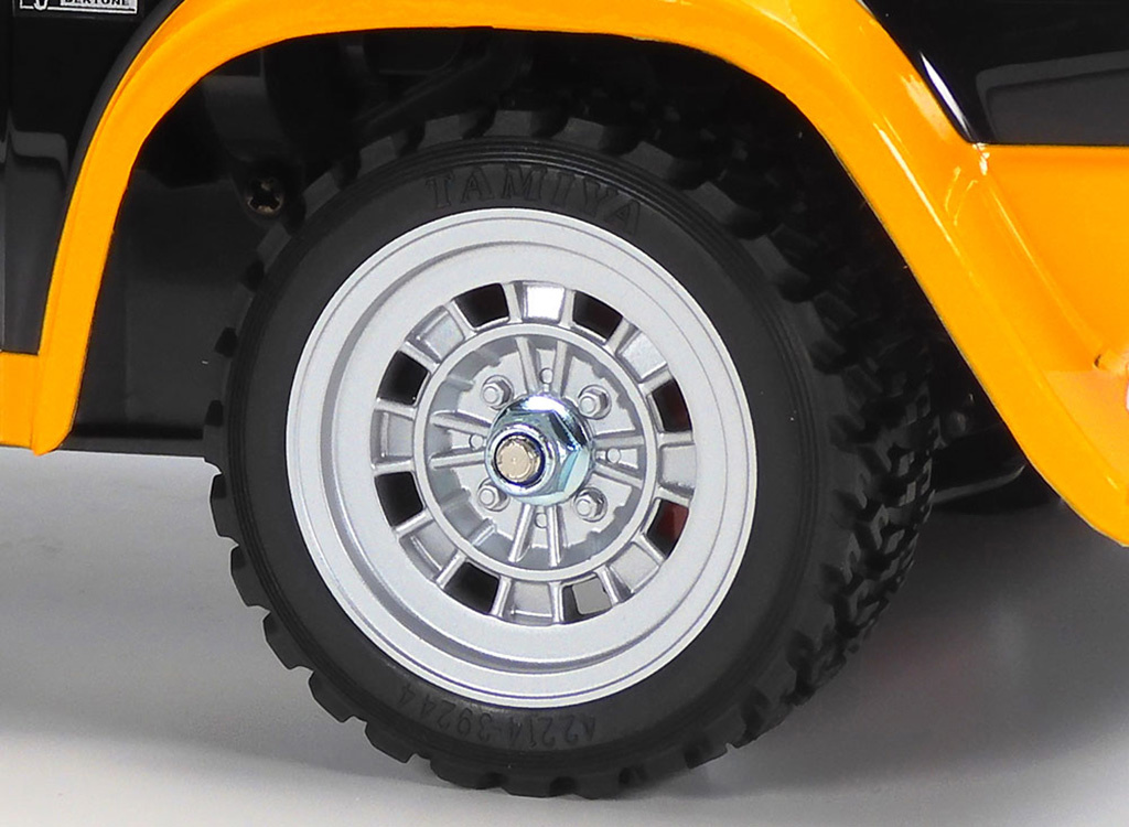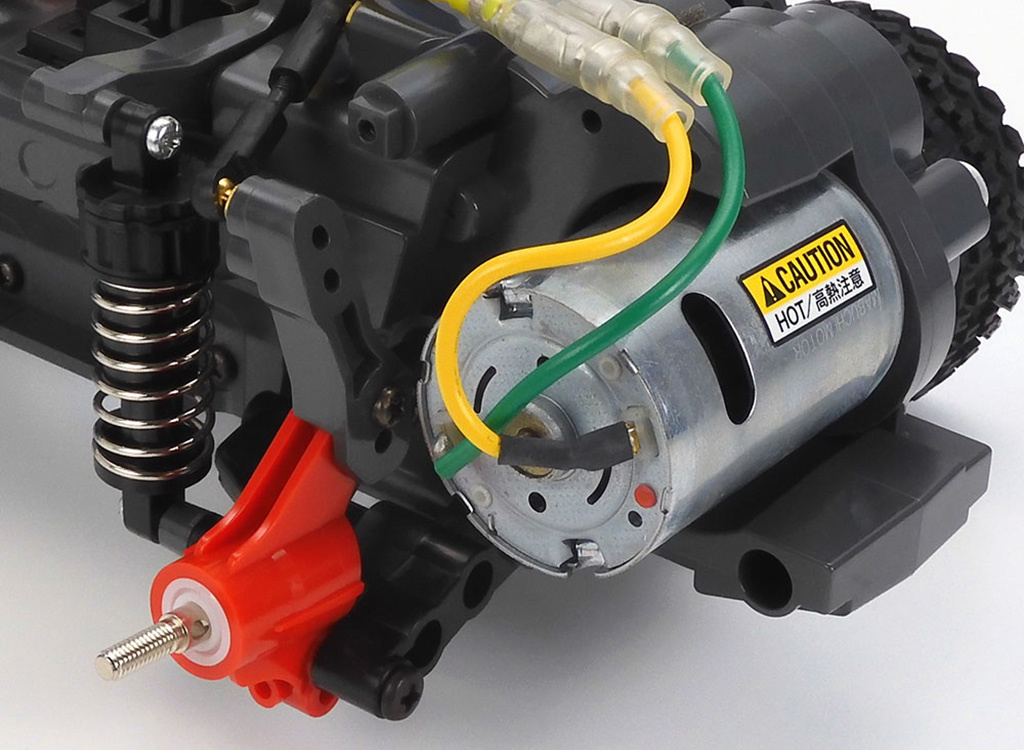 ♦Length: 400mm, width: 180mm, height: 132mm ♦Wheelbase: 239mm (L) ♦Tire width/diameter (front & rear): 26/60mm ♦Tread (front & rear): 138mm ♦Monocoque frame ♦Shaft-driven 4WD ♦3-bevel differential gears ♦2-piece steering tie-rod ♦4-wheel double wishbone suspension ♦Front & rear friction dampers ♦Gear ratio = 9.5:1 ♦Type 540 motor ♦Electronic Speed Controller (sold separately)