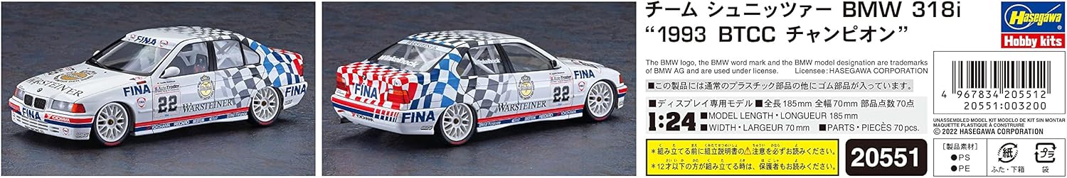 1:24 Scale Hasegawa BMW 318i Team Schnitzer 1993 BTCC Champion Car Model Kit