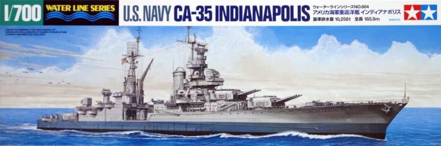 After the repairs, she loaded secret cargo and personnel at San Francisco, and sailed for Tinian Island on July 16, where a B29 bomber base was located, and arrived there to unload the cargo and personnel on July 26. Then four days later, on July 30, she sunk after taking two torpedo hits from the submarine I-58. About the Model This is a plastic model assembly kit of the U.S. Navy heavy cruiser, Indianapolis. 1/700 scale, 266mm in overall length, 29mm in overall width Precisely replicates the anti-aircraft armaments and equipment improved in July 1945.