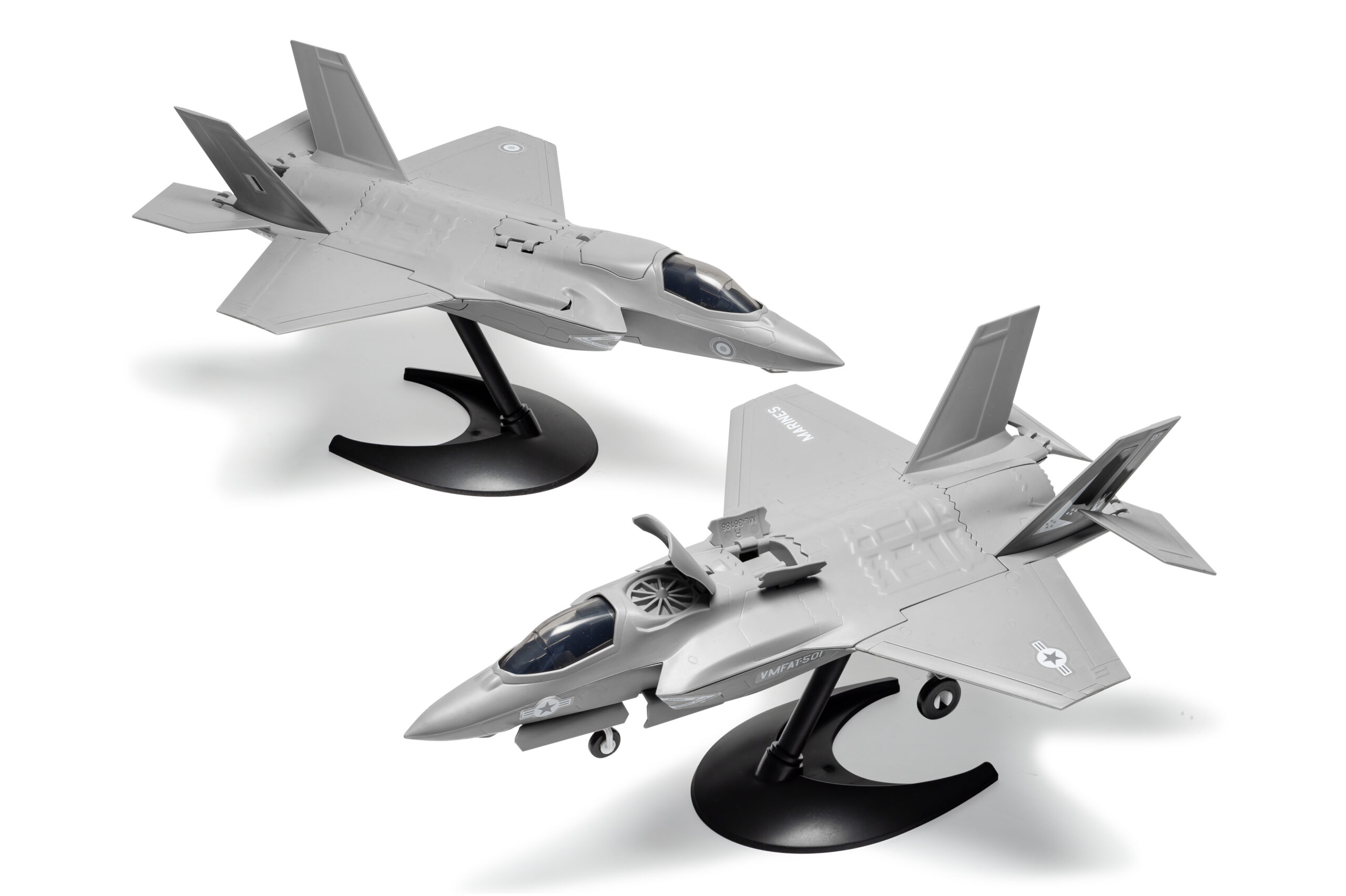 Included with each model are a full set of easy-to-follow colour instructions, free-rolling wheels for cars and tanks, and display stands for all the aircraft. F-35B Lightning II The F-35 is a single-seat, single-engine supersonic jet with the most advanced computers and networking abilities yet to take to the air, and stealth capabilities designed to make it hard to pick up on enemy radar. The F-35B variant, which has a lift fan mounted behind the cockpit giving the jet short take-off and vertical landing (STOVL) capabilities, meaning it can hover like a Harrier. Working alongside the Typhoon, the F-35 will operate from land, but most importantly it will fly from the two new Royal Navy Queen Elizabeth carriers.