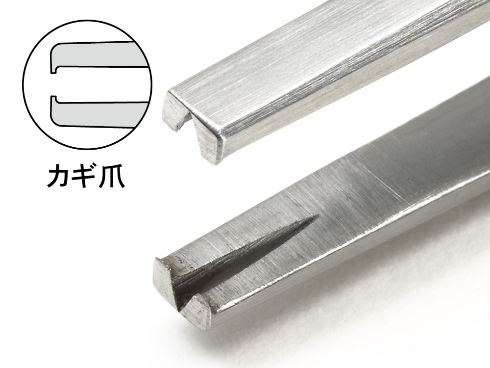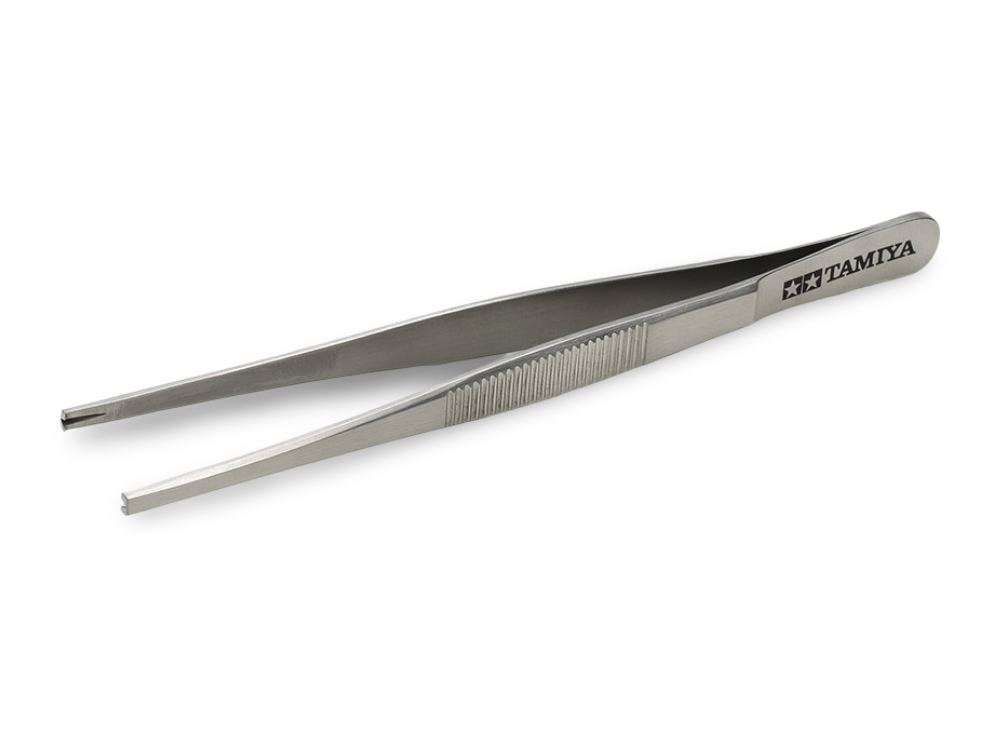 These precision tweezers are perfect for use in the assembly of static models and maintenance of R/C models thanks to their pronged tips, which are designed to grip small parts securely. Each tip has two prongs and a groove to reduce the risk of parts coming loose out of the front and sides, and allow you to easily grip minute parts such as 3mm diff balls and small-diameter shafts. Crafted in stainless steel.