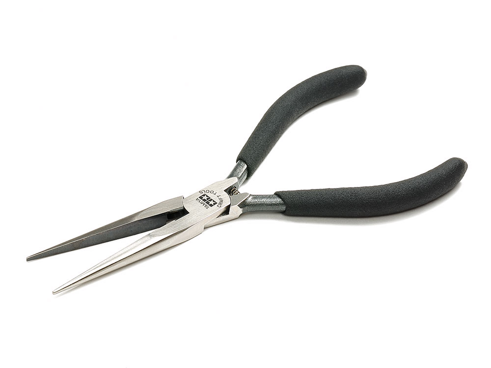★Needle nose pliers for use on R/C, static model products and more, with long, slimline jaws providing superb grip. ★The pliers can be used as one would tweezers, and are also suitable for bending and cutting materials such as brass wire. ★Jaws are treated chromium-vanadium steel.